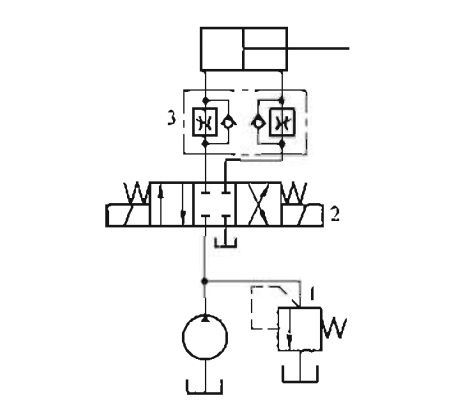 V hydraulickém systému, když se hydraulický válec rozšiřuje na určitou délku, již se nemusí pohybovat a musí být držen pouze v určité poloze po určitou dobu. V tomto okamžiku lze k udržení válce na místě použít směrový kontrolní ventil nebo hydraulický zámek. Obecný hydraulický obvod je následující: